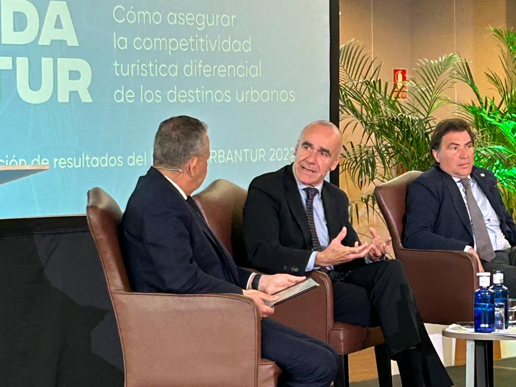 Muñoz ha participado, tras la presentación del informe, en un coloquio junto a directivos del sector (Jordi Ferrer, consejero delegado de Hesperia, José Luque, director general de Fuertegroup Hotels y presidente de AEHCOS, y Javier Díaz-Laviada, consejero delegado de Hertz España y presidente de ANEVAL), donde se han abordado algunos de los restos para proteger la identidad de las ciudades turísticas.