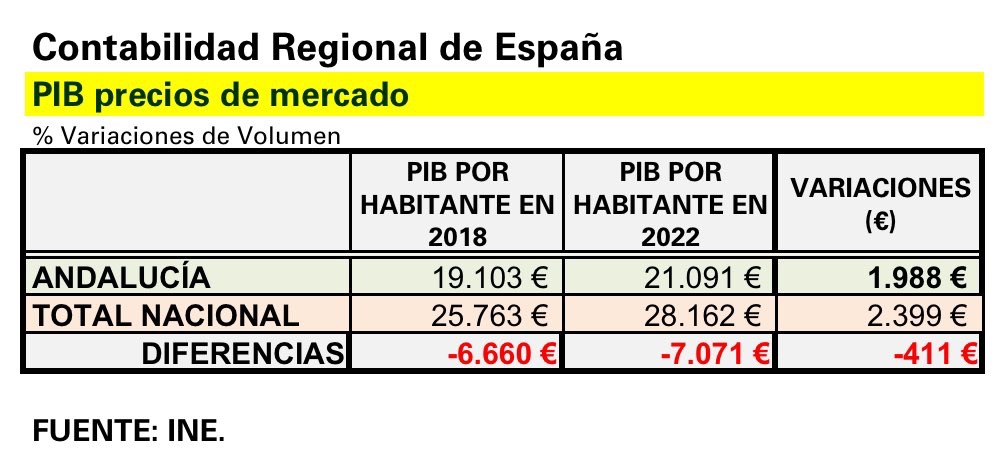 Y como consecuencia Andalucía ha pasado a ser vagón de cola de la economía española por primera vez en la historia.