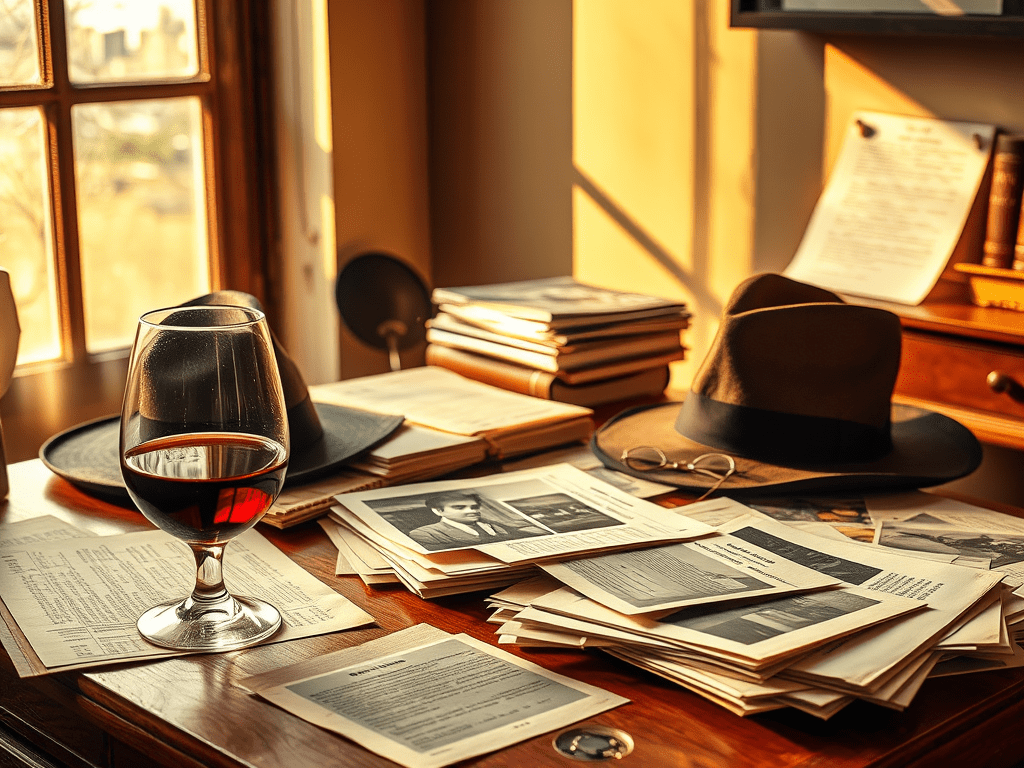Sobre el escritorio, una pila de documentos y fotos, y al lado, un vaso medio lleno de un vino tinto local. Este era Pepe Kanalla, un detective privado que, a pesar de su apariencia de otra época, estaba a punto de sumergirse en un caso que mezclaba la tradición de Jerez con los vicios modernos.