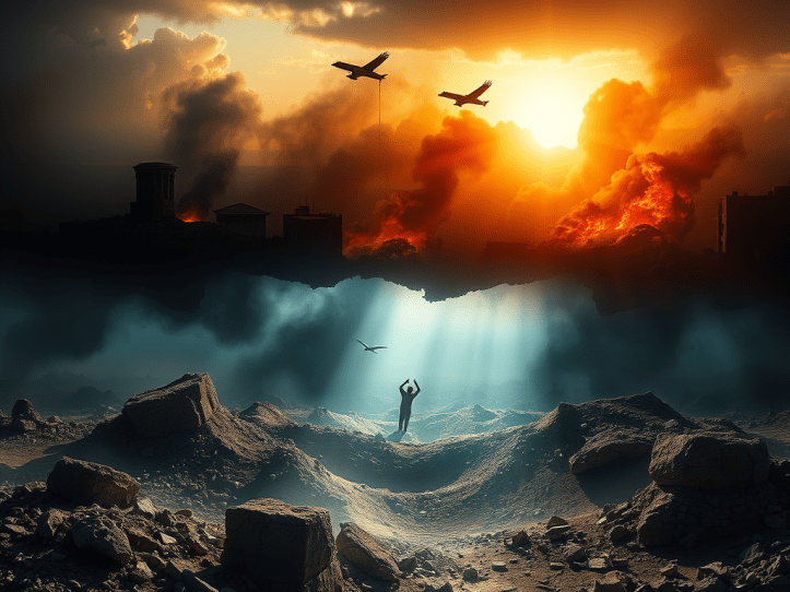 LAS ILUSTRACIONES Una visión onírica de la guerra en Gaza podría estar llena de símbolos y emociones intensas, reflejando tanto el sufrimiento como la esperanza. En el sueño, tal vez veas escenas de destrucción y conflicto, pero también momentos de resistencia y solidaridad entre las personas. La tierra puede aparecer como un lugar de heridas abiertas, pero también de resistencia persistente, con voces que claman por paz y justicia. La imagen puede estar marcada por contrastes: luz en medio de la oscuridad, esperanza entre sombras, memoria de pérdidas y sueños de un futuro diferente. Es un reflejo simbólico de un conflicto muy profundo y complejo, que a menudo despierta sentimientos de tristeza, empatía y deseo de paz. (P.C.)