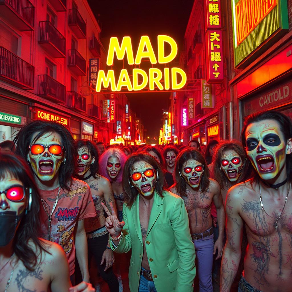 En el Madrid zombificado, a las cinco de la mañana, la Puerta del Sol parecía un plató de pesadilla, pero con un eco ochentero que gritaba Movida Madrileña. Entre la horda de zombis –votantes desencantados y sombras de ancianos olvidados– se colaban personajes sacados de un videoclip de Almodóvar mezclado con La Bola de Cristal. Alaska, con su icónica cresta fluorescente, y Mario Vaquerizo, luciendo una chaqueta de lentejuelas robada del armario de Tino Casal, bailaban entre los zombis como si estuvieran en un after del Rock-Ola.