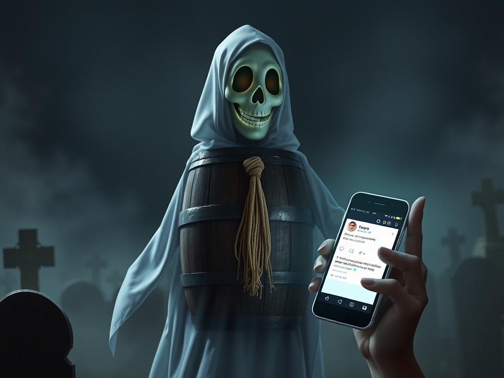 Hace 131 años, un bodeguero tuiteó (sí, con paloma mensajera): > «El mejor amontillado está en mi barrica. Quien lo pruebe, no volverá a beber otra cosa». > Nadie le dio RT. > Murió de sed… espiritual. > Ahora, cada Halloween, su fantasma busca un like. > Si lees esto… ya estás en su lista de notificaciones. > 🔔👻